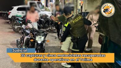 Policía del Tolima reporta 35 capturas y recuperación de motocicletas durante el fin de semana